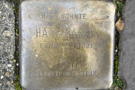 Höfestraße 8: der ledige Fabrikarbeiter Hans / Johann Martin starb als politisch Verfolgter am 28.09.1933 im damaligen Polizeipräsidium an der Krebsgasse 1/3 im Alter von 21 Jahren.