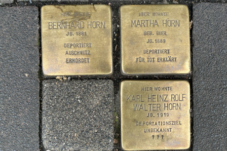 Kalker Hauptstraße 100: Bernhard Horn wurde 61 Jahre alt und im KZ Auschwitz ermordet. Karl Heinz Horn wurde 22 Jahre alt und mit unbekanntem Ziel deportiert. Martha Horn wurde 59 Jahre alt und ebenfalls mit unbekanntem Ziel deportiert.