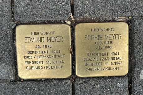Kalk-Mülheimer Straße 14: Edmund Meyer wurde 67 Jahre alt und starb im KZ Litzmannstadt an einer "Lungenentzündung". Sophie Meyer wurde 62 Jahre alt und im KZ Kulmhof umgebracht.