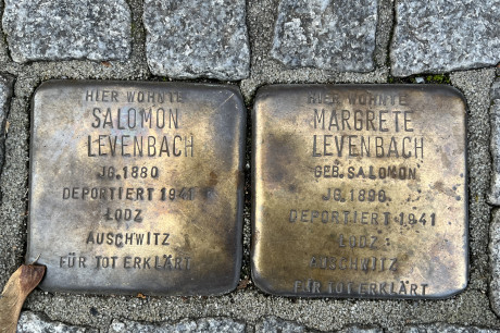 Bachstraße 22: Theresia wurde mit 57 Jahren deportiert und im KZ Lodz umgebracht. Markus wurde mit 65 Jahren deportiert und im KZ Lodz umgebracht.