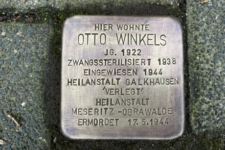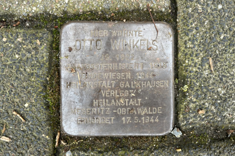Hermann-Löns Weg 45: Otto Winkels wurde 1922 geboren und war wohnhaft in Solingen. Er wurde 1935 zwangssterilisiert und 1936 in die Heilanstalt Galkhausen eingewiesen. Nach der Deportation in die Tötungsanstalt Obrawalde wurde er dort am 17. Mai 1944 ermordet. Er wurde nur 22 Jahre alt.