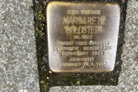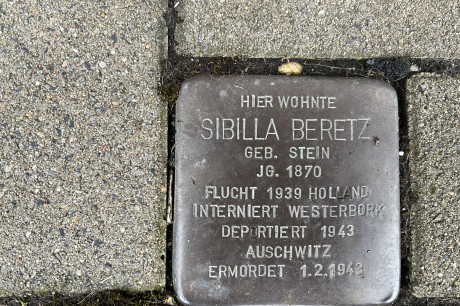 Friedenstraße 81: Sibilla Stein wurde am 17.04.1870 als Tochter von Lazarus Stein und Regina Stein, geb. Levy in Gindorf geboren, sie heiratete Alexander Beretz (*20.08.1856, †unbekannt), drei Kinder sind bekannt: Josef, Johanna und Josefine. Nach der Flucht im Jahr 1939 nach Holland wurde Sibilla im Durchgangslager Westerbork interniert. Von dort aus wurde sie im Jahr 1943 ins KZ Auschwitz deportiert, wo sie am 01.02.1943 ermordet wurde.