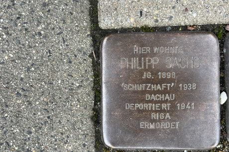 Landstraße 23: Philipp Sachs wurde am 14.08.1898 in Werther geboren, er heiratete Henriette Winter, eine Tochter (Jenny) ist bekannt. Philipp wurde vom 17.11.1938 bis zum 22.12.1938 als Schutzhäftling im KZ Dachau inhaftiert. Am 11.12.1941 wurde er ab Düsseldorf ins Ghetto Riga deportiert, wo er ermordet wurde. Er wurde 43 Jahre alt.