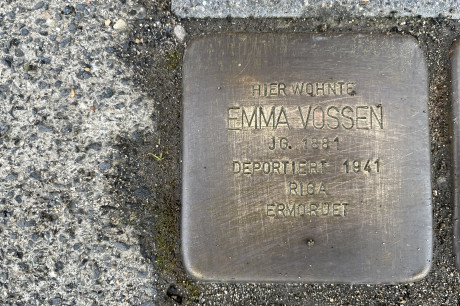 Grevenbroicher Str. 14: Emma Vossen wurde am 20.07.1881 in Wevelinghoven geboren, ein Bruder ist bekannt: Josef. Emma wurde am 11.12.1941 ab Düsseldorf ins Ghetto Riga deportiert, wo sie ermordet wurde. Sie wurde 60 Jahre alt.