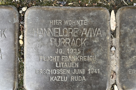 Hannelore Burrack wurde am 23.01.1934 als Tochter von Siegfried Burrack und Edith Ruth Burrack, geb. Dubowsky in Grevenbroich geboren. Hannelore und ihre Mutter konnten über Frankreich nach Litauen fliehen, am 21.06.1941 wurden beide in Kazlų Rūda erschossen. Sie wurde nur 7 !! Jahre alt