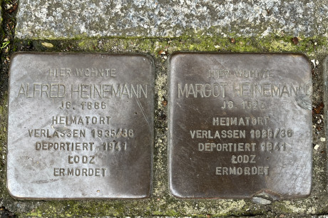 Margot Heinemann wurde am 08.04.1925 als Tochter von Alfred Heinemann und seiner Ehefrau Frieda Heinemann, geb. Levy in Grevenbroich geboren, ein Bruder (Ernst) ist bekannt. Die Familie verließ – sehr wahrscheinlich unfreiwillig – den Heimatort und verzog 1935/36 nach Köln. Margot wurde am 30.10.1941 mit dem Transport 341 I/382 von Köln ins Ghetto Litzmannstadt verbracht und von dort im Mai 1942 ins Vernichtungslager Kulmhof deportiert, wo sie ermordet wurde (strittig: Diese Quelle nennt das Ghetto Theresienstadt als Ziel der Deportation und Todesort). Sie wurde nur 17 !! Jahre alt.