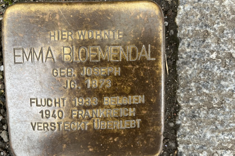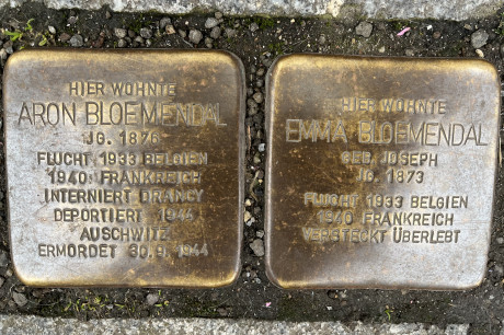 Kölner Str. 46: Aron Bloemendal wurde am 04.05.1876 (Strittig: Diese Quelle gibt den 05.05.1875 als Geburtstag an) in Smilde geboren. Aron heiratete Emma Joseph, ein Sohn (Heris) ist bekannt. Die Familie flüchtete über Lüttich (1933) nach Lille (1940). Aron wurde im Sammellager Drancy interniert und von dort aus mit dem Transport 72 ins KZ Auschwitz deportiert, wo er am 30.09.1944 ermordet wurde. Sie wurde 68 Jahre alt.