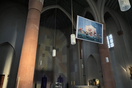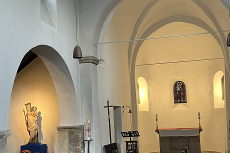Seit November 2019 schmückt die Skulptur "Blauer Engel" der Künstlerin Claudia R Picht den Chorraum.